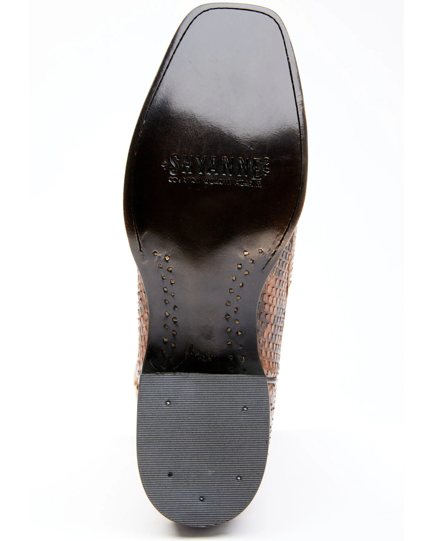 - Exotic snake skin foot with full-grain leather upper